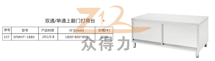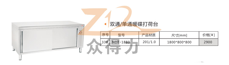 江西眾得力廚具有限公司生產銷售食品機械、商用廚具,為您提供中央廚房整體解決方案而不斷努力,打荷臺系列分為雙通系列單通系列、暖碟系列、翻門系列,標準尺寸為1.8米*800mm和1.5米*800mm兩種規格,歡迎選購。
