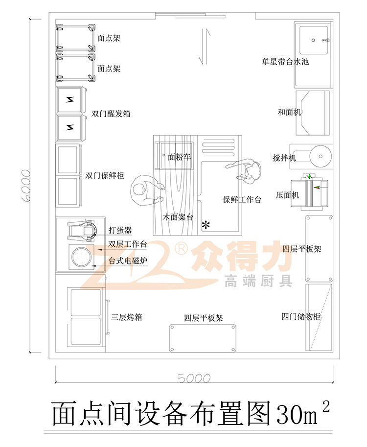 星級酒店廚房獨立操作空間面點間規劃布局圖解-廚房面點間解決方案-眾得力廚具
